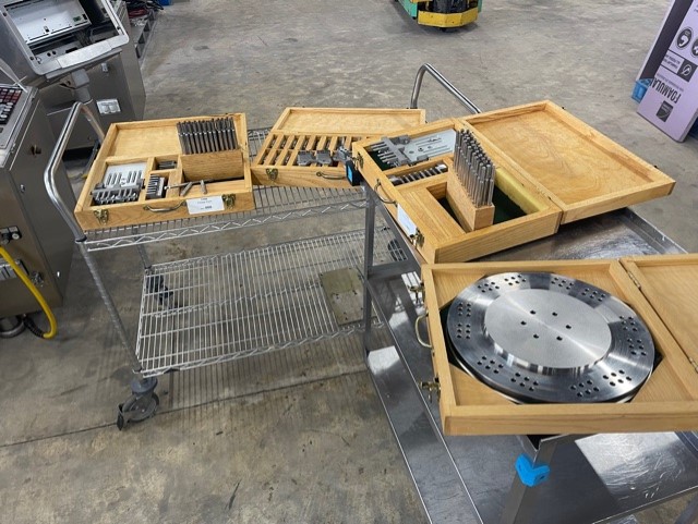 BOSCH GKF 1500/1200 size "00" Capsule filler Change Parts/Tooling INCLUDES: (1) Capsule Magazine Complete (1) Horizontal Sorting Finger (1) Sorting Block Complete (12) Upper Segments (12) Lower Segments (72) Tamping Pins (1) Dosing Disc (2) Segment Alignment Pins (2) Tamping Alignment Pins