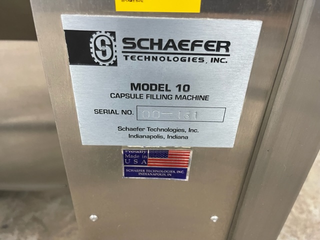 Model 10 manufactured by Schaefer Technologies in 2002. This unit is capable of filling 18,000 to 25,000 capsules per hour. Electric's are 3 phase 220Volt. Unit is an all self-contained unit with a vacuum pump, auger drive powder filler, and has a Pneumatic air closing station ** Please note - All sales of tabletting and encapsulation equipment will be registered in accordance to D.E.A. guidelines. **