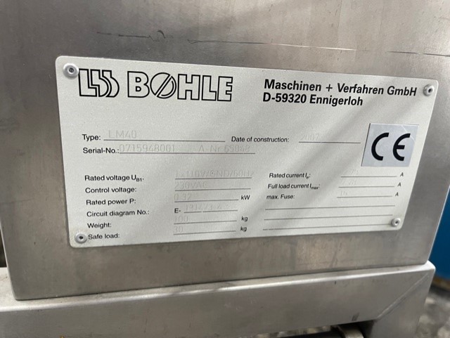 LB Bohle Bin Blender. Unit comes with (5 ) Bin Blending Container, Variable Speed, Kubler Blending Timer, Speed Display, Safety Enclosure, Mobile Stand, Stainless Steel Construction. come with. 1) 5 liter. (2 10 liter. (1) 25 liter. (1) 40 liter.