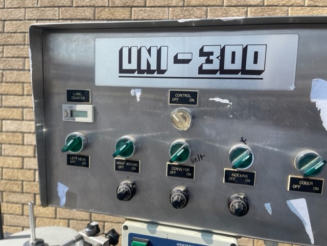 CLI wrap around Labeler- Model UNI-300. machine in good running condition. including 8 ft sanitary Variable speed conveyor with 4 1/2" plastic chain,