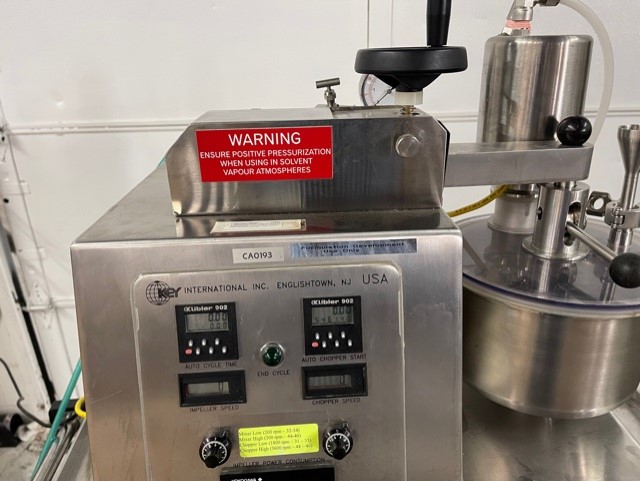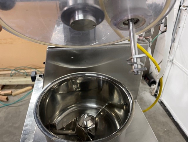 Key International KG5 High Shear Mixer. Interchangeable bowl system for different batch sizes ( 5 liter) Main propeller has a 3-blade design with speeds from 50-750 rpm Options include variable speed chopper