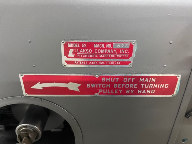 Lakso Model 52 Single Head Station Cottoner. Machine is capable of speeds up to 60 bottles per minute stainless steel construction. Volt :110.