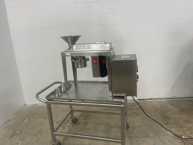 Quadro 197 Comil. Unit comes with (3) Screens and (1) Impeller. Machine is on casters for portability. Driven by a 110/ Volt, 60Hz In-feed and Discharge Chute