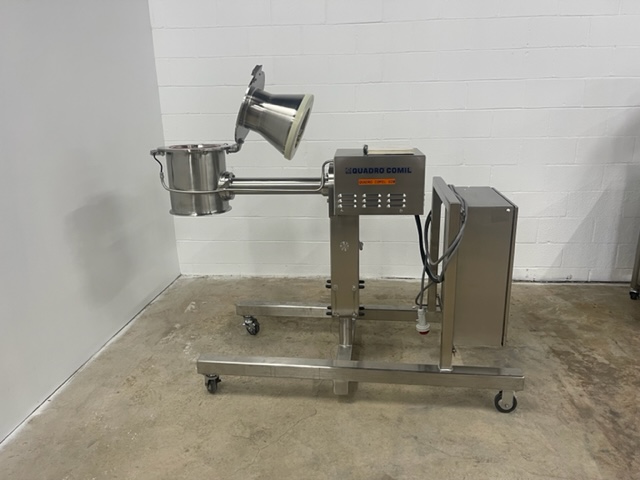 Quadro Comil, Model U20, Stainless Steel. Approximate capacity up to 4250 pounds an hour. Top feed, bottom discharge. Driven by an a 5 hp, 3/60/480 volt, motor RPM 450 -2800. Mounted on stainless steel frame with casters. Built 2007