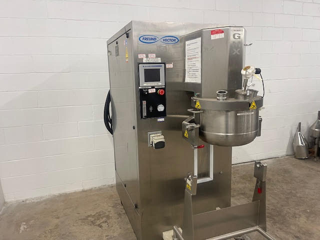Vector GMX-25 High Shear Mixer 25 Liter Bowl Allen Bradley PanelView Plus 600 User Interface Includes GMX-25 Cart On Casters BOWL CAPACITY 25 L WORKING CAPACITY 8.25 - 17 L . MIXER SPEED 43 - 425 RPM. Top Drive High Shear Wet Granulation Mixing Systems The GMX GRANUMEIST® High Shear Granulator and Mixer is designed for efficient and homogenous wet granulation of powders to form a medium to high density granule. Its top-drive design allows for easy cleaning and maintenance, faster processing times, and superior user safety. Engineered with the end-user in mind, the GMX GRANUMEIST® family is the ideal solution for your wet granulation and mixing needs