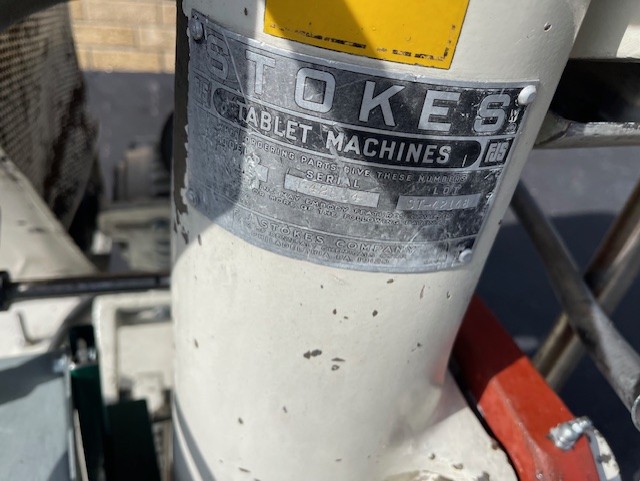 Stokes Model 900-512-1 (B-2) Rotary Tablet Press, 4 ton compression pressure, 16 station, 5/8" max. tablet diameter, 11/16" max. depth of fill, B Tooled, rated 650 tablets per minute. Press is driven by a 3 Hp/3/60/230-460v motor. ** Please note - All sales of tabletting and encapsulation equipment will be registered in accordance to D.E.A. guidelines. **